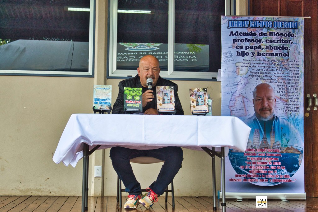 El escritor y filósofo desamparadeño Johnny Campos contó con un stand en la actividad donde estuvo exponiendo y compartindo con las personas sus libros. Además, hizo una presentación amena donde, además, recitó parte de sus escritos. Su presentación se puede ver en la transmisión realizada por el medio SAN JUAN DE DIOS INFORMA en el siguiente enlace: https://fb.watch/eu-zzfR7Jr/ Johnny da su curso llamado Taller Independiente, donde leen y escriben, los miércoles de 3 PM a 5 PM en el Centro Cultural Joaquín García Monge.