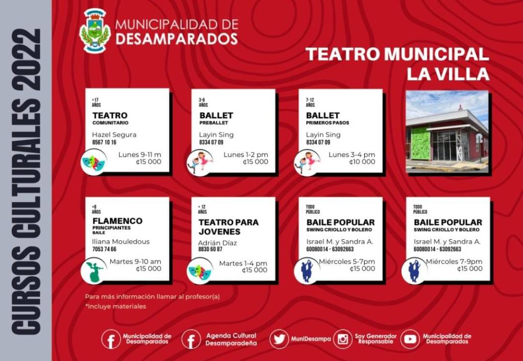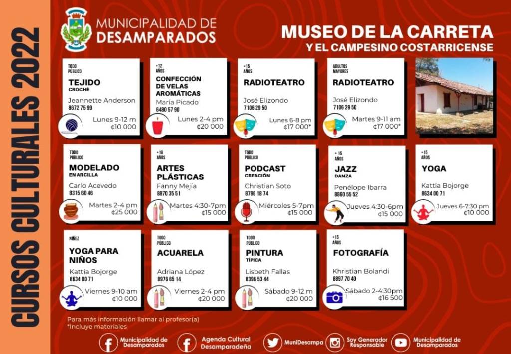 La actividad fue acompañada por presentaciones y exposiciones de los avances en los cursos artísticos que se imparten gracias a la colaboración y gestión del departamento cultural de la Municipalidad de Desamparados. Entre ellos, se puede mencionar cursos de baile, teatro, títeres, escritura, producción de podcast, fotografía, pintura (en varias técnicas), arcilla, entre otras.