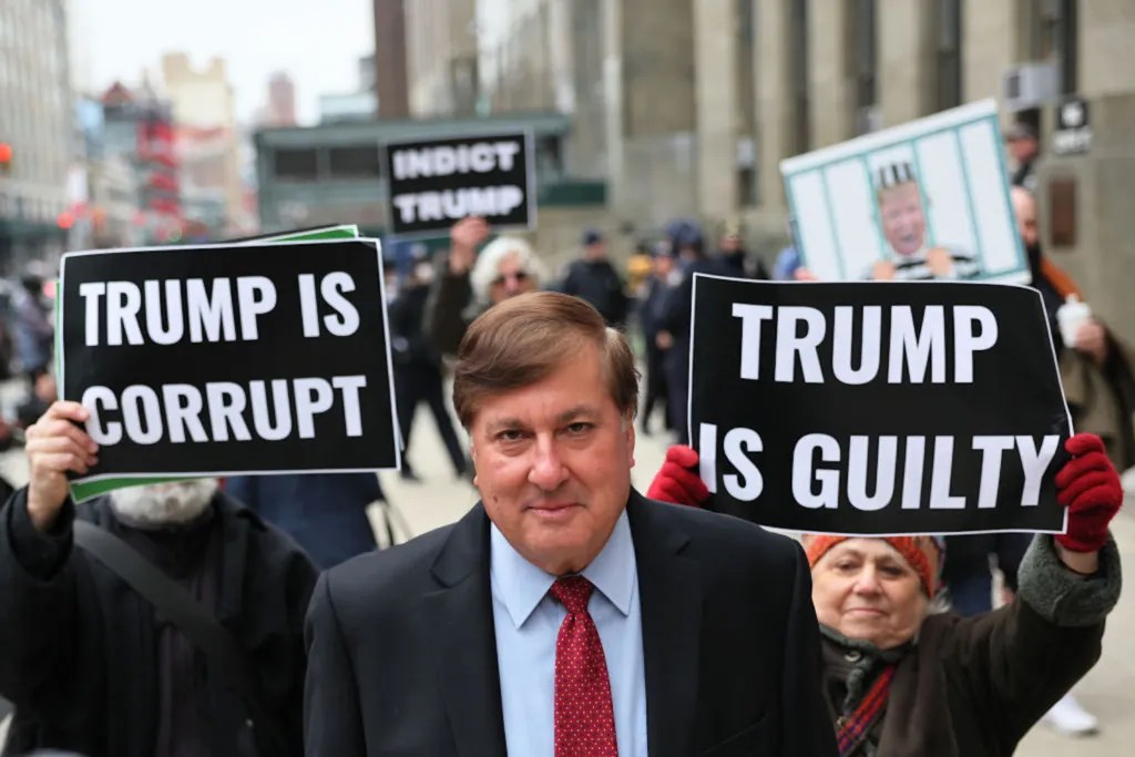 Nicholas Gravante, abogado del ex ejecutivo de la Organización Trump Allen Weisselberg, abandona el Tribunal Penal de Manhattan después de la audiencia de sentencia de sus clientes el 10 de enero de 2023 en la ciudad de Nueva York. (Crédito: Michael M. Santiago/Getty Images)