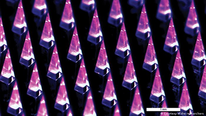 El dispositivo imprime parches de dos centímetros de ancho que contienen cientos de agujas diminutas que administran una vacuna cuando se presionan contra la piel. Estos «parches de microagujas» ofrecen una serie de ventajas sobre las inyecciones tradicionales en el brazo, entre ellas que pueden autoadministrarse sin dolor, podrían resultar más atractivas para los reacios a las vacunas, y pueden conservarse a temperatura ambiente durante largos periodos de tiempo.