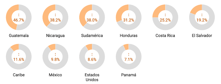 Estos riesgos climáticos tienen el potencial de descarrilar las economías de la región que siguen dependiendo en gran proporción de la producción agrícola. Así por ejemplo, si vemos el valor de las exportaciones por país reportadas en el Atlas de Complejidad Económica de la Universidad de Harvard, se encuentra que salvo por Panamá con un 7.1%; en el resto de los países, el peso de las Agro exportaciones es alto, pues en El Salvador representa 19.2% del valor total de todas las exportaciones, en Costa Rica 25.2%, en Honduras 31.2%, en Nicaragua 38.2%, y en Guatemala 46.7%. Como referencia, en Estados Unidos representa un 8.6% y en México un 9.8%.