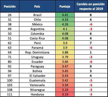 Cuadro 1. Resultados de América Latina en el Índice de Desarrollo en Viajes y Turismo 2024.
