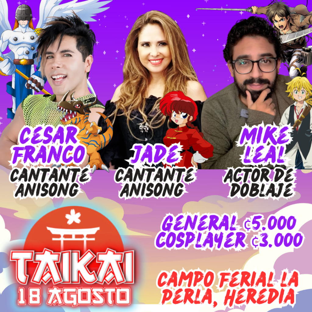 Las entradas para el Taikai Fest tienen un costo de ₡5.000 y ₡3.000 para cosplayers. Puedes comprarlas en el Campo Ferial La Perla o a través de las redes sociales del evento.
